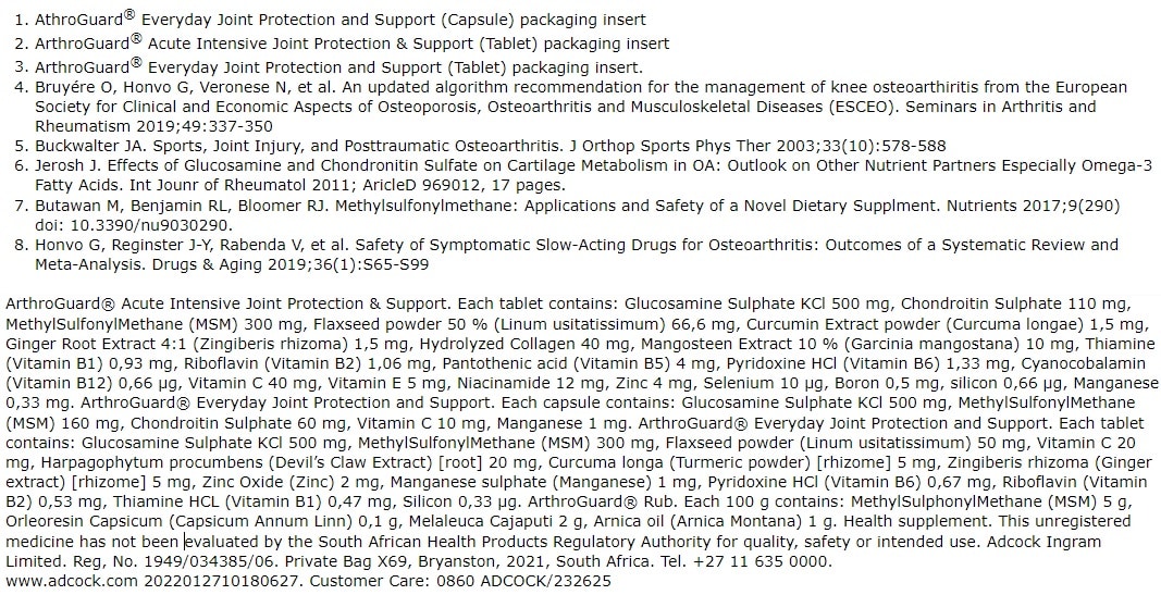 When choosing a product to support and maintain healthy joints, look for ingredients that could assist in relieving the symptoms as well as help to maintain the joint structure. Examples of these ingredients are glucosamine and chondroitin as they are important basic natural components of cartilage and synovial fluid. They are natrually formed by the body but can also be provided in a diet.8b MSN (or methylsulfonylmethane) occurs naturally in nature, is absorbed by marine life or from the soil by plants, including our usual fruits, vegetables and grains.6a, 6b