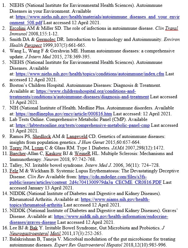 The exact cause of autoimmune disease is not known but there are certain known factors that contribute to the development of some common disorders. Genetic characteristics (race, gender, ethnicity), environmental factors, certain viruses or bacteria can in some ways be linked to the development of an autoimmune disease as well as overuse of antibiotics.1,2,4,5,7