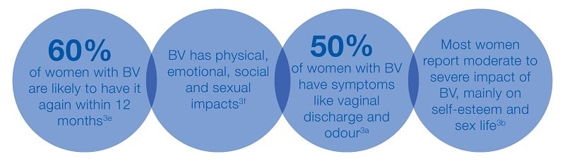 • Bacterial vaginosis (BV) affects 1 in 3 women.1d,3c,4b