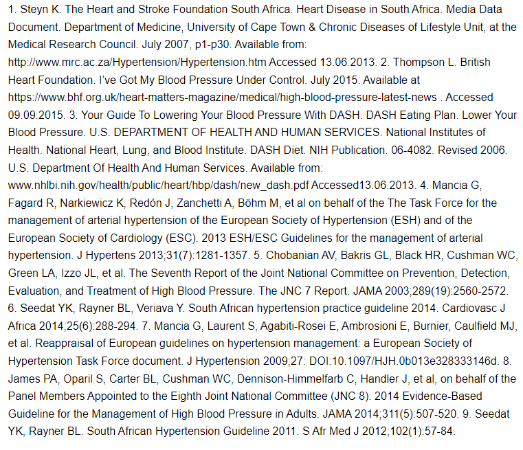 The Department of Health in South Africa recommends a healthy lifestyle as the best way to manage hypertension. Research shows that a healthy lifestyle will: