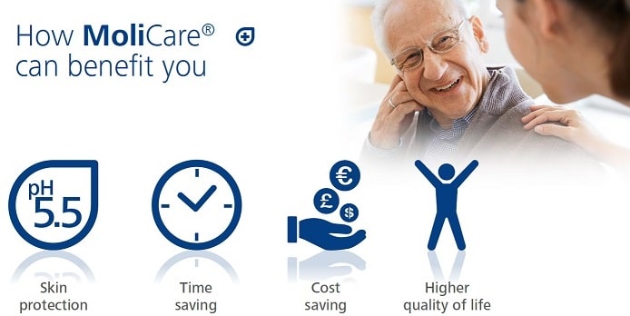 MoliCare® Premium is an absorbent range of products from slight to severe incontinence, that contains curly fibre and has active skin protection, used in combination with the MoliCare® Skin barrier cream & MoliCare® Skin Zinc Oxide cream with NUTRISKIN protection complex and skin balanced pH5.5. Protection Complex for