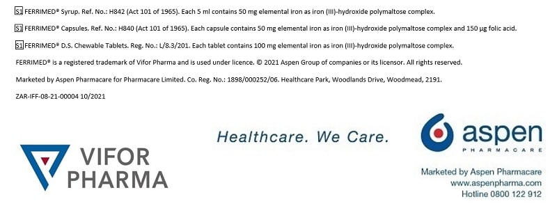 IF YOU ARE IRON DEFICIENT SPEAK TO YOUR PHARMACIST ABOUT FERRIMED®. Available without a prescription.