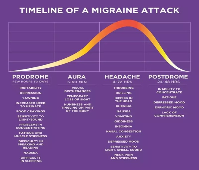 Not everyone experiences all four phases with each attack, and symptoms can overlap significantly between phases.12