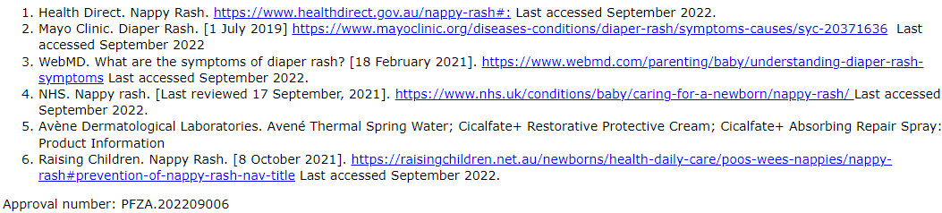 Using Avène Thermal Spring Water Spray will further soothe your baby’s irritated skin by reducing skin reactivity, strengthening the skin barrier, and boosting the skin’s defences. Avène Thermal Spring Water Spray and Cicalfate+ Restorative Protective Cream will significantly decrease nappy rash symptoms through soothing and strengthening the skin. As the nappy area is often damp, leading to nappy rash, it’s also important to use Cicalfate+ Absorbing Repair Spray. This spray dries, repairs, purifies and soothes irritated skin and oozing nappy rash.5